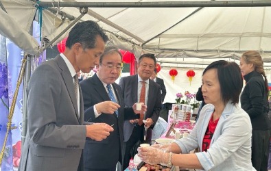 農業部胡忠一政務次長於11日親自出席「笠間浪漫」活動開幕儀式,向日本消費者介紹臺灣當季盛產的文旦柚、紅肉種紅龍果與香蕉等鮮果,以及各式果乾產品,還有香腸、貢丸湯與豬排等臺式特色豬肉料理,並邀請現場民眾欣賞臺灣精緻花卉產品,讓日本參觀民眾充分感受到臺灣農業的多元與魅力。